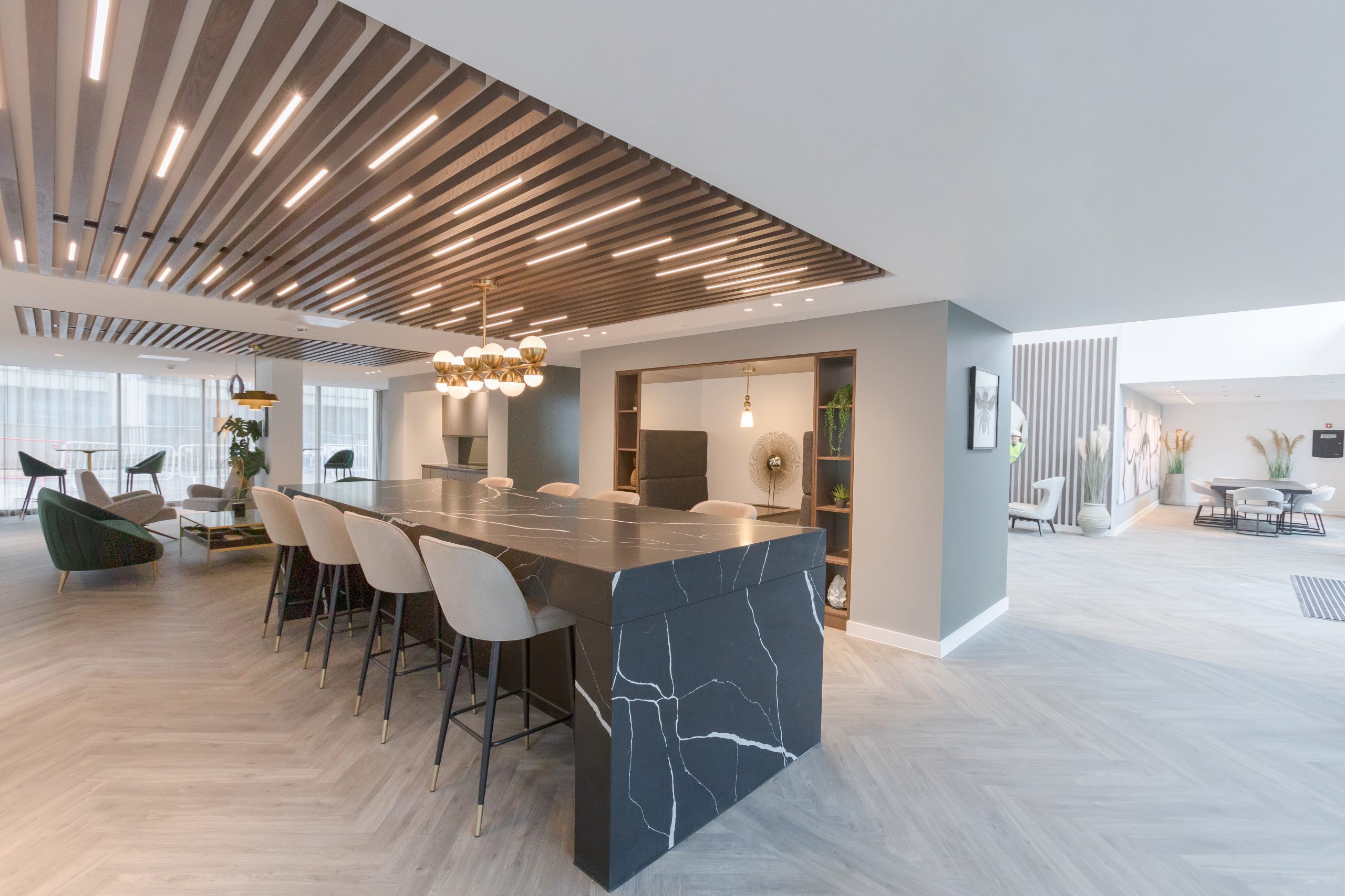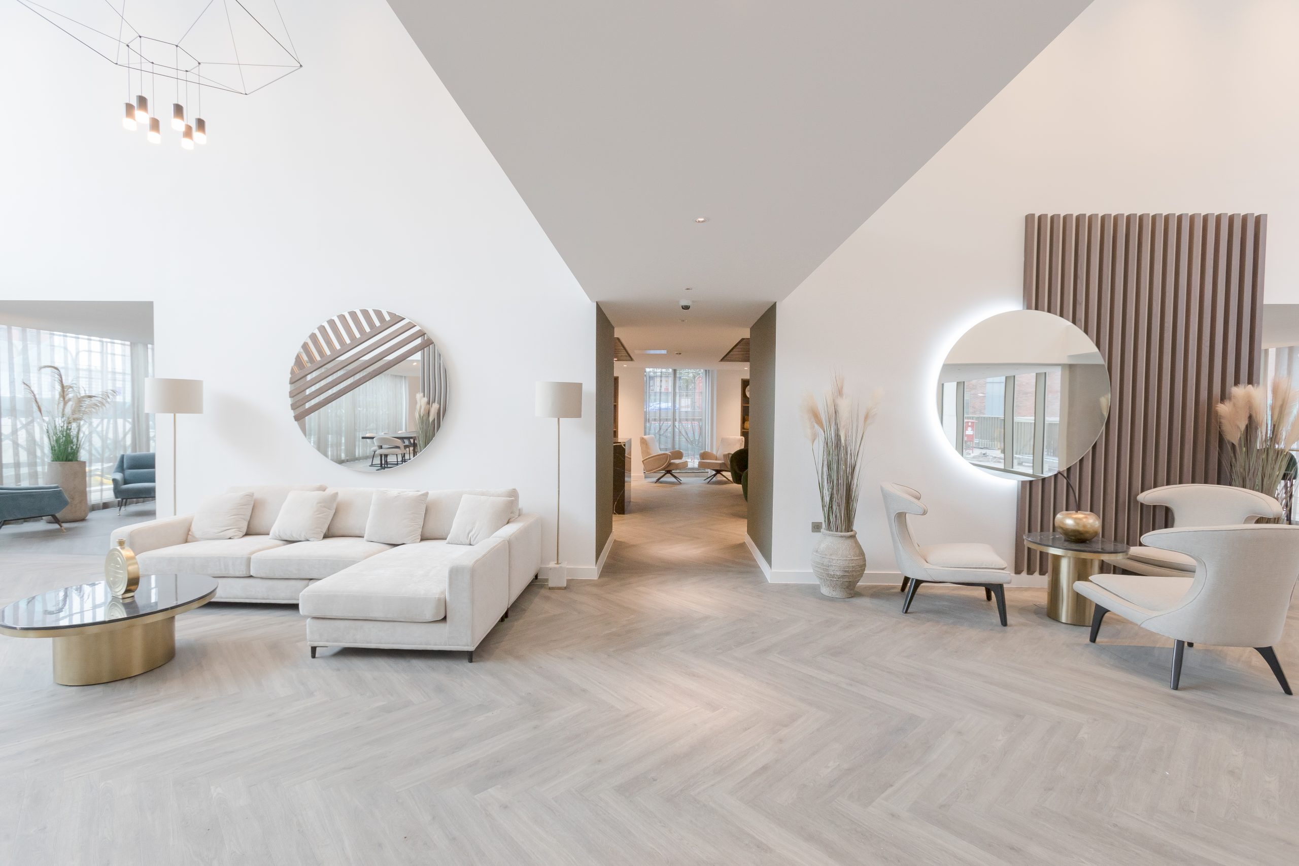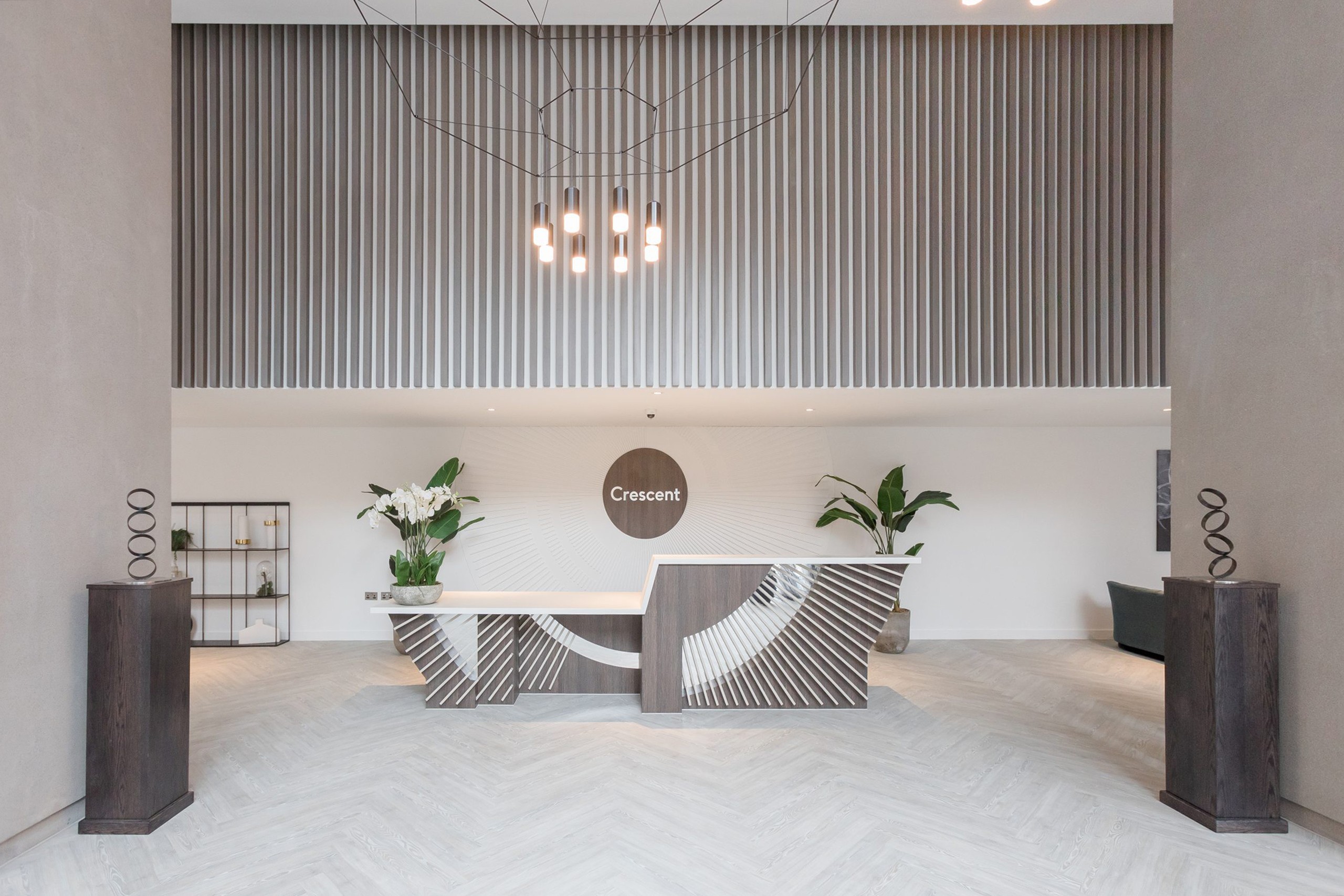 At Local Crescent, we were appointed to design and furnish an extensive range of resident amenities, including two cinema rooms, a gym, spa with pool and solarium, multiple lounges and breakout spaces, kitchenettes and a dramatic vaulted reception area.