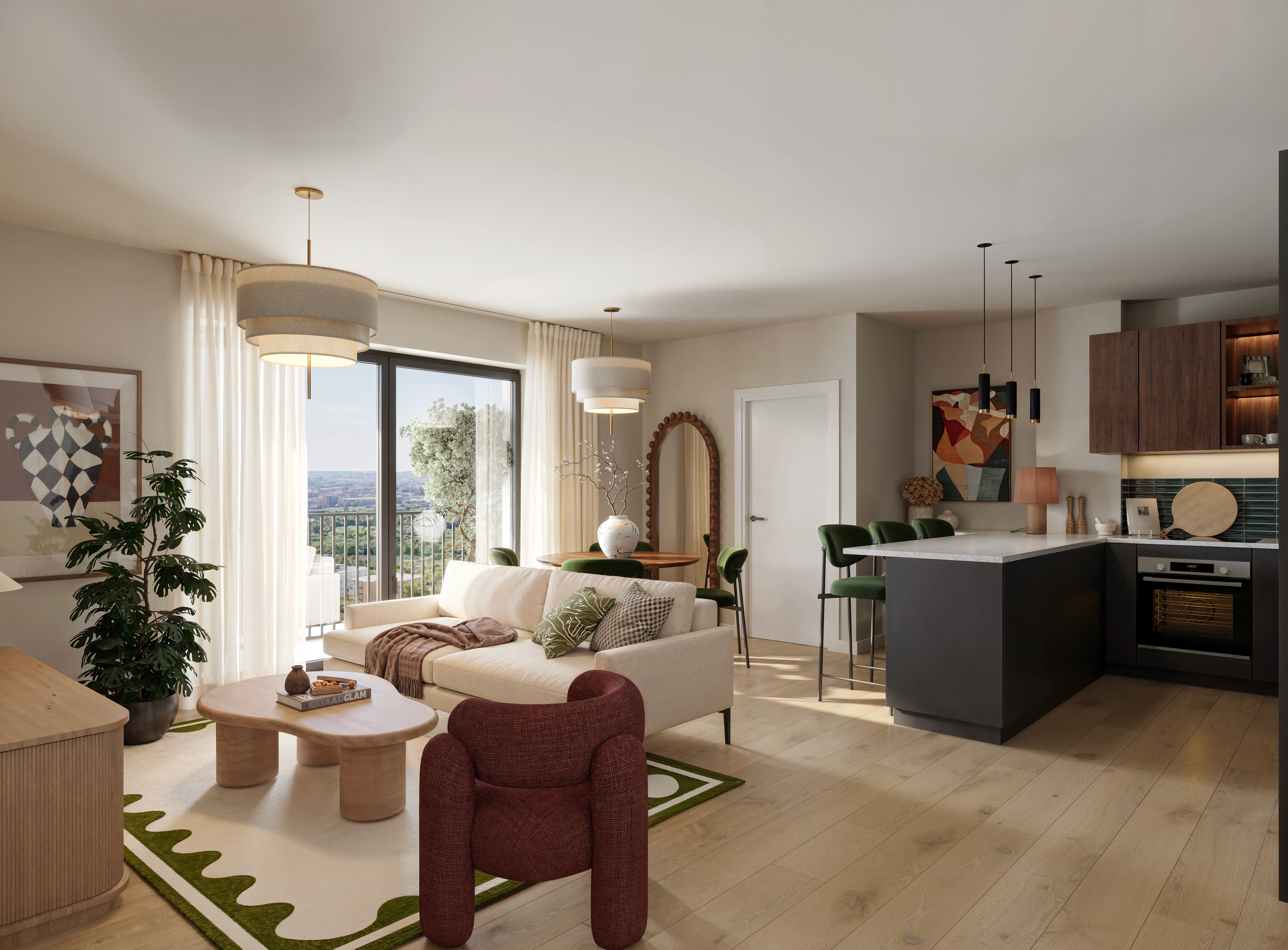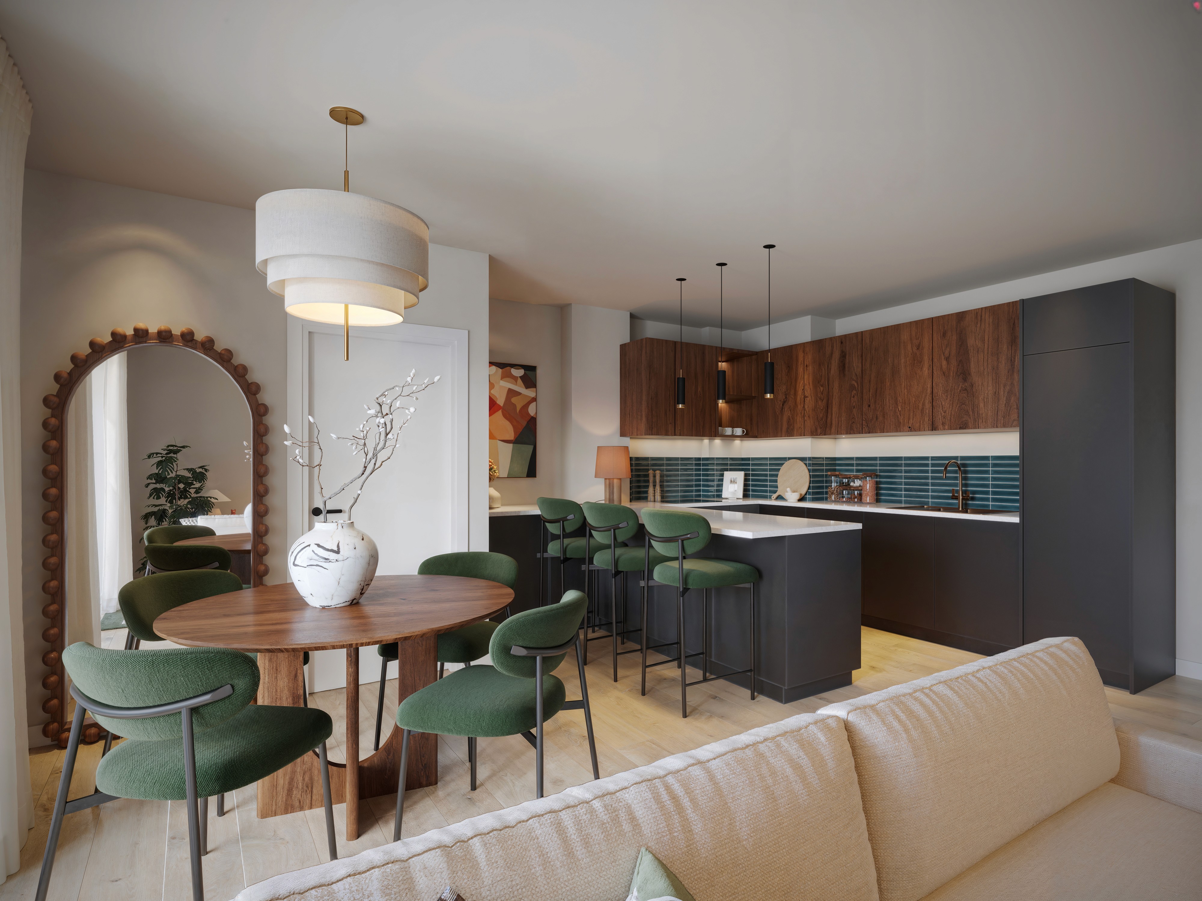 We were appointed to deliver a full interior design specification for this new residential development in Manchester, encompassing the finishes and fitted joinery in the 62 apartments and the double-height ground floor communal amenity space. The design formed the foundation for a suite of high-quality CGIs used to market the scheme.
