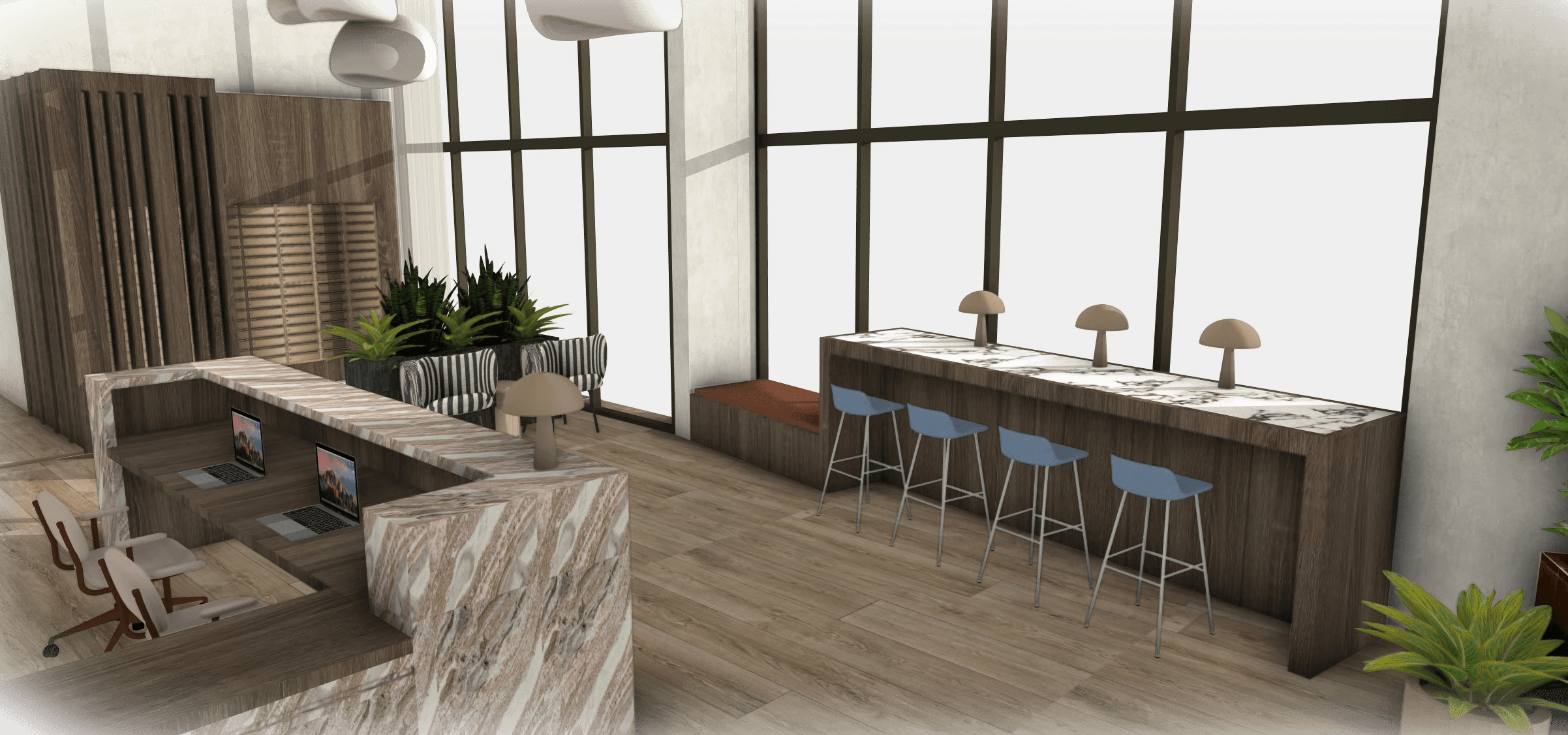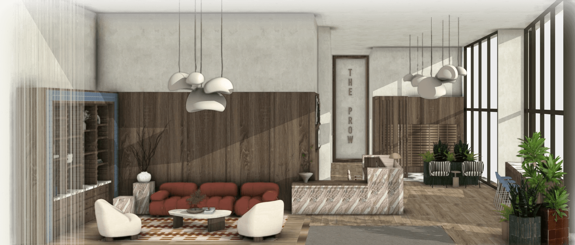 Particular attention was given to the amenity areas, where we developed a fully resolved 3D model to communicate the design intent clearly and cohesively. This model was then translated into photorealistic CGIs, capturing the atmosphere, materiality and spatial quality of the interiors, and providing a powerful visual narrative to support the marketing of the development.