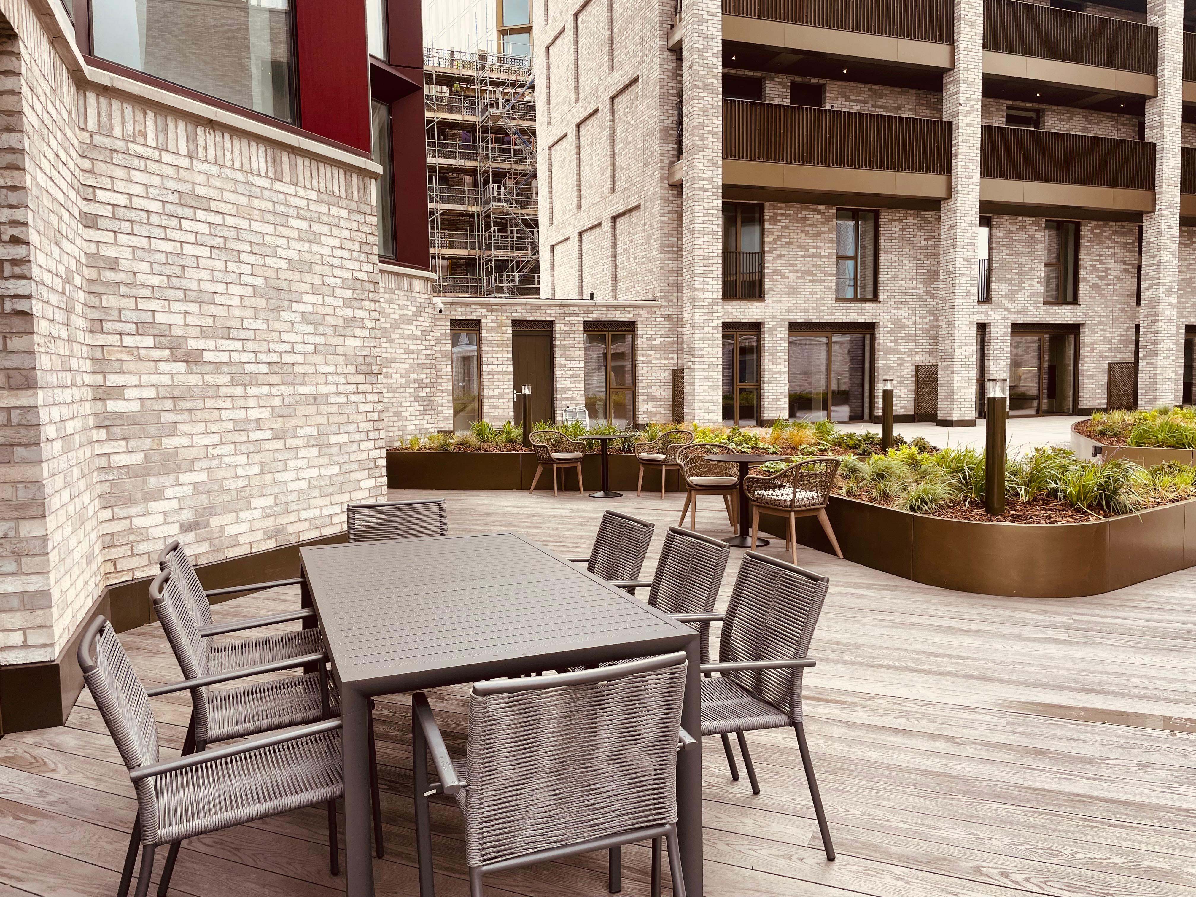 We provided loose furniture to the external terrace at Crown View, Victoria Riverside, alongside the bespoke furniture package we specified for purchase by investors.