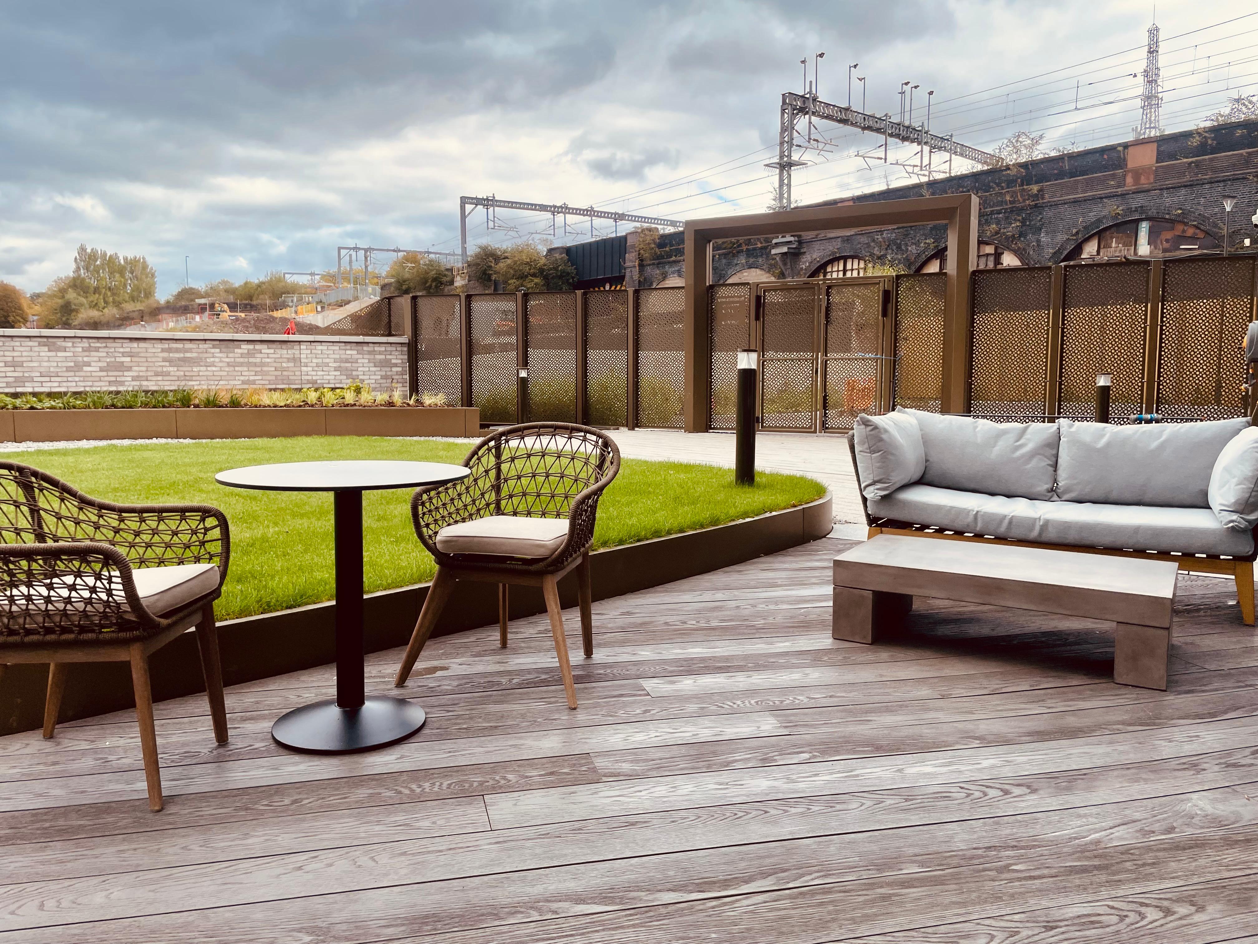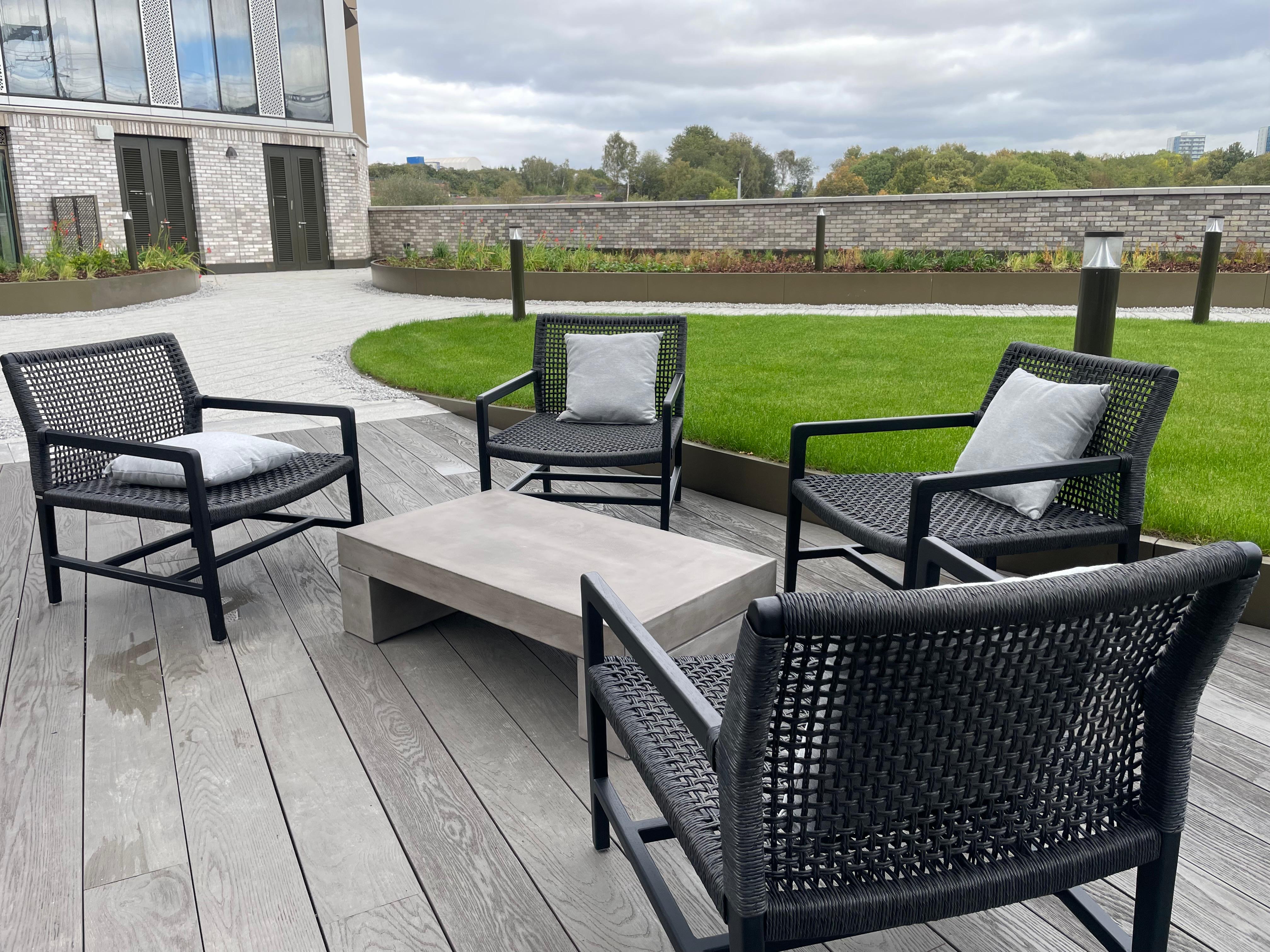 The developer, FEC, asked us to enhance the roof terrace at the scheme with select furniture pieces, which needed to be carefully considered for weight and weather-proofing.