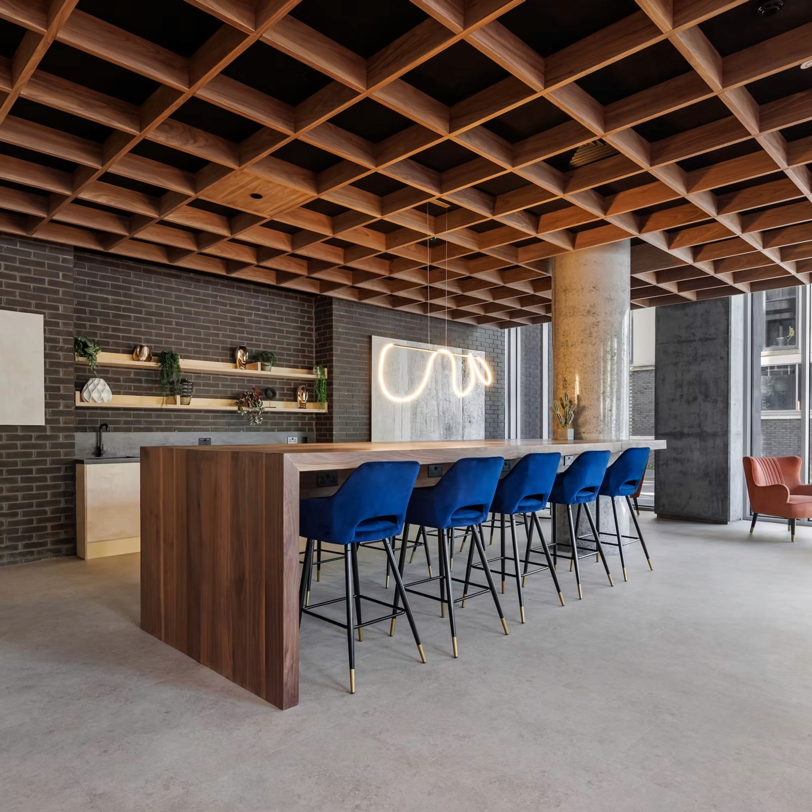 We partner with our developer clients to transform spaces into environments which are functional, beautiful and strategically aligned with their needs. Through thoughtful research, concept development and detailed design execution, we create interiors which reflect brand identity, support wellbeing and enhance everyday experiences. We design cohesive, purpose-driven environments tailored to how people live, work, and connect. Our service encompasses early design vision and intent, space planning and preliminary finishes selection, with indicative budget preparation for furniture, dressing and decorative lighting; we then expand each of these elements, to provide general arrangement and fitted joinery drawings, finishes schedules, FF&E schedules and a detailed cost plan, ready for clients to take forward with our specification, procurement and fit-out service, or to realise the vision through their own contractors.